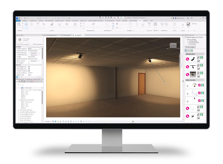 ReluxCAD for Revit offers extensive lighting calculation functions directly in Revit, so that planners and engineers can carry out accurate and standard-compliant lighting calculations without having to leave the Revit environment.