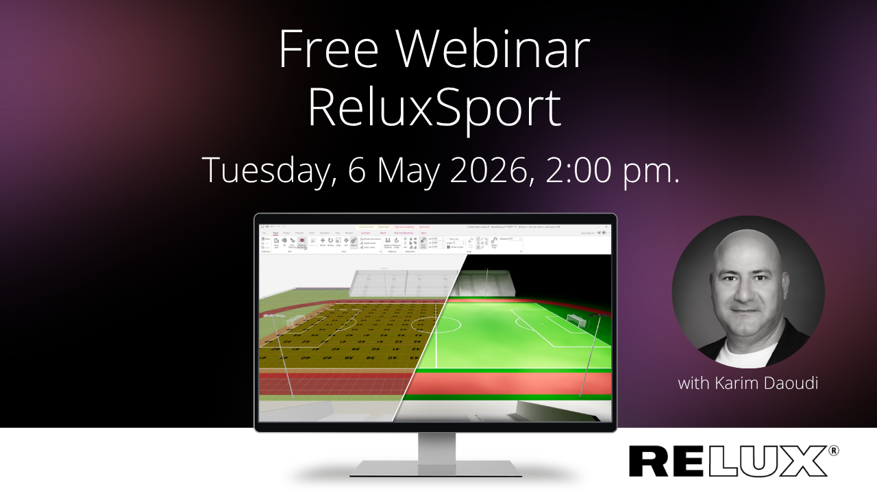 The new ReluxSport add-on enables professional and standards-compliant sports lighting design. ReluxSport streamlines your entire design and calculation workflow within ReluxDesktop. With standards-based templates, automated scenes and real-time result generation, you can deliver professional projects in record time.