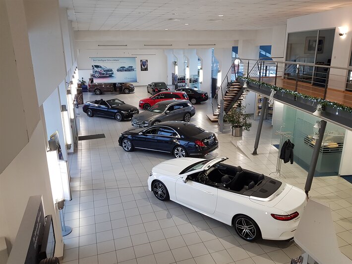 As part of the refurbishment of its dealership in Saalfeld, Auto Müller GmbH & Co. KG partnered with RP-Group to implement a tailored LED lighting solution across its showroom, offices, workshop, and storage areas. The project aimed to enhance the presentation of vehicles, improve working conditions, and significantly reduce energy costs.