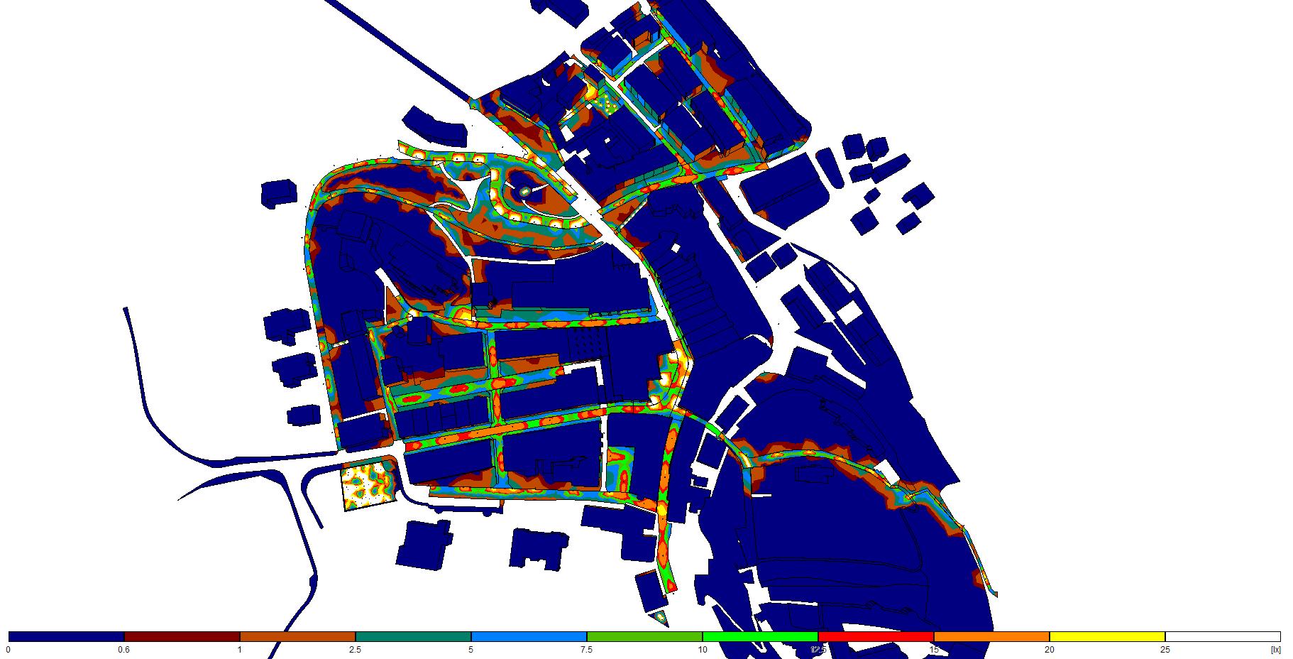 The main challenge was achieving the right contrast between highlighted details and the illumination of the entire tenement. Light spill and skyglow had to be minimized, requiring additional verification through lighting calculations.