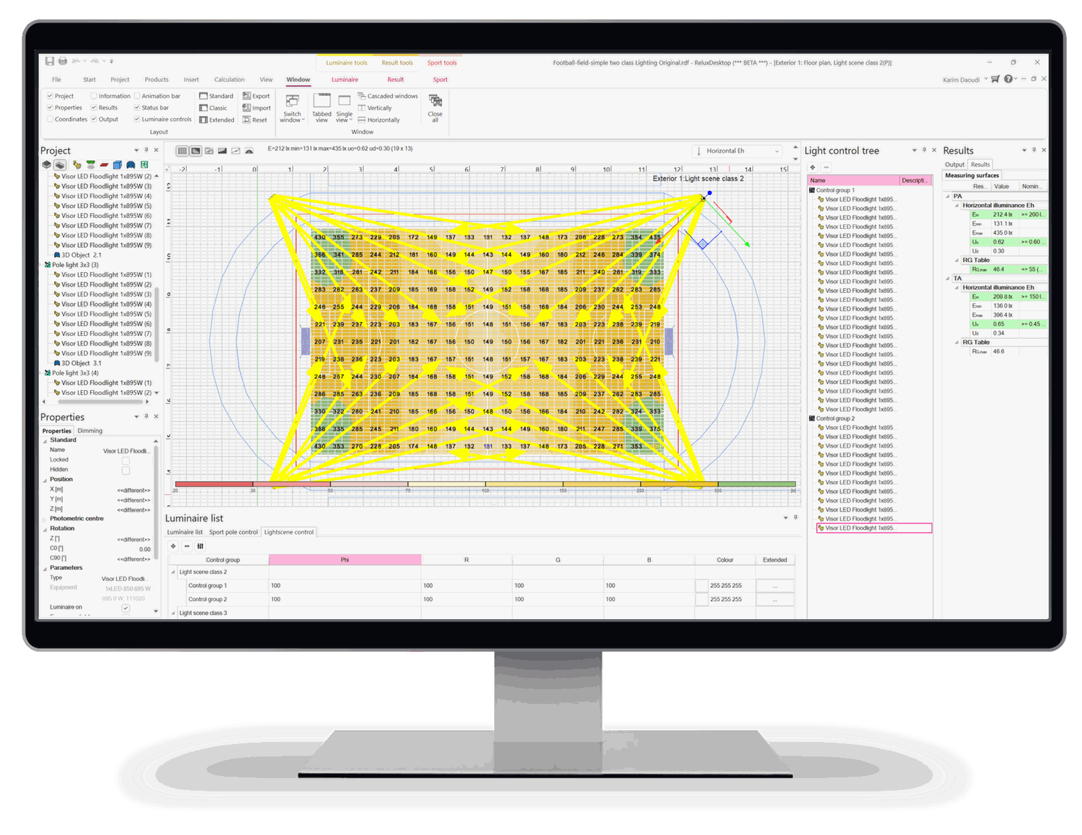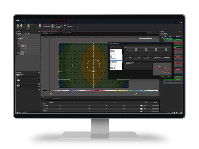 ReluxSport is an add-on for ReluxDesktop for standard-compliant lighting planning of sports facilities. It supports lighting designers, electrical engineers and architects in the design of training and competition facilities in accordance with EN 12193:2018 and UEFA guidelines.