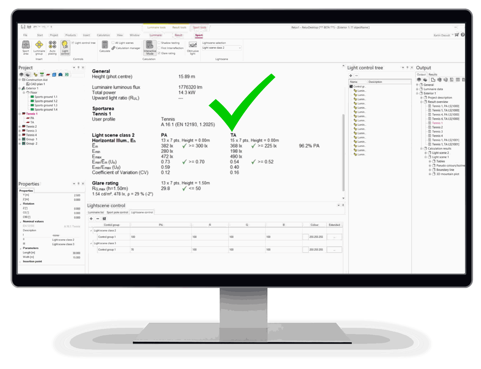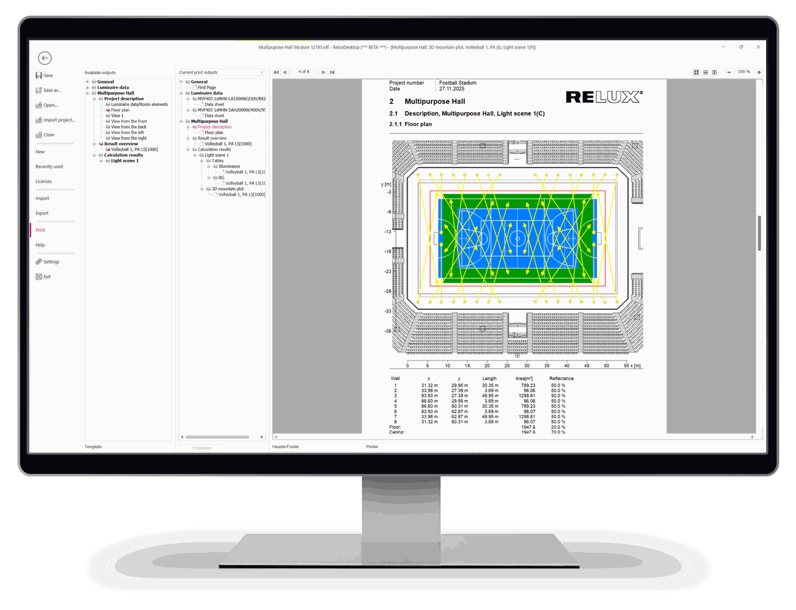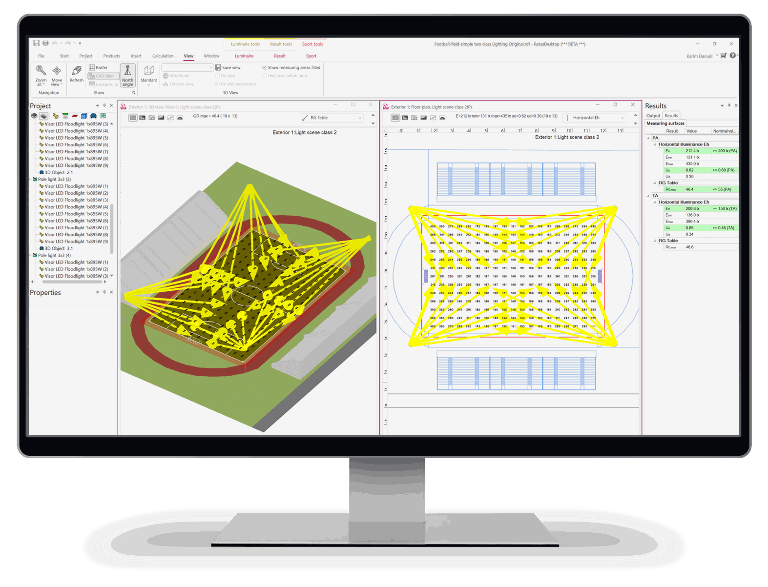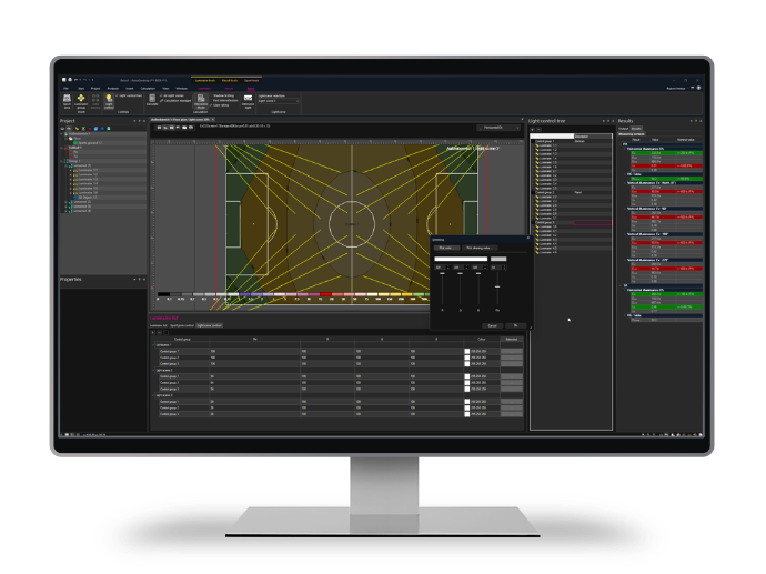 ReluxSport accelerates your entire design and calculation workflow within ReluxDesktop. With sport-ready templates, automated lighting scenes, and near-instant feedback, you deliver professional, standard-compliant projects in record time.